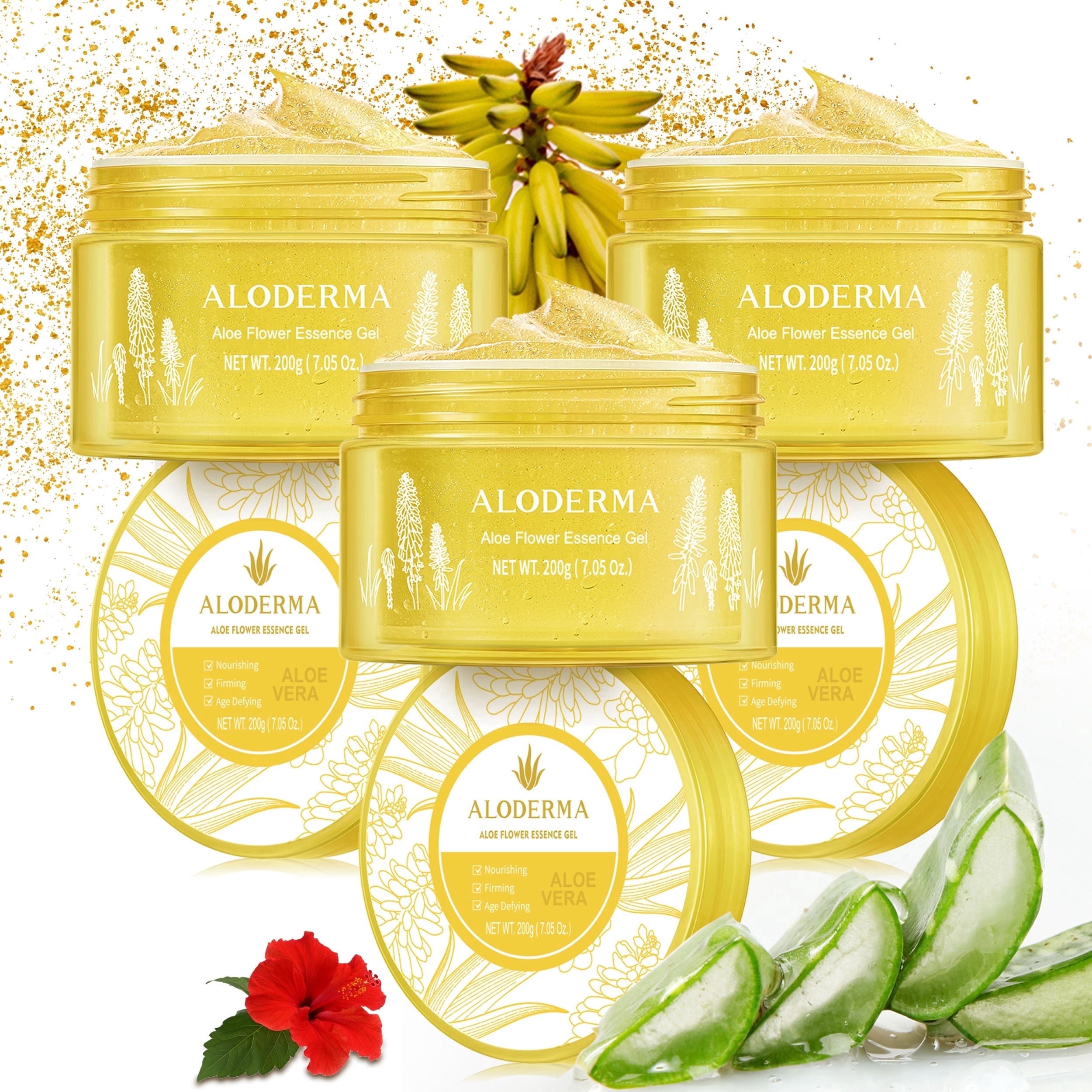 Aloderma Age-Defying 24K Gold Leaf Aloe Flower Essence Gel, Made within 12 Hours of Harvest – Luxurious Aloe Gel with Allantoin & Hyaluronic Acid for a Glowing, Shimmering, Youthful Complexion, 7oz