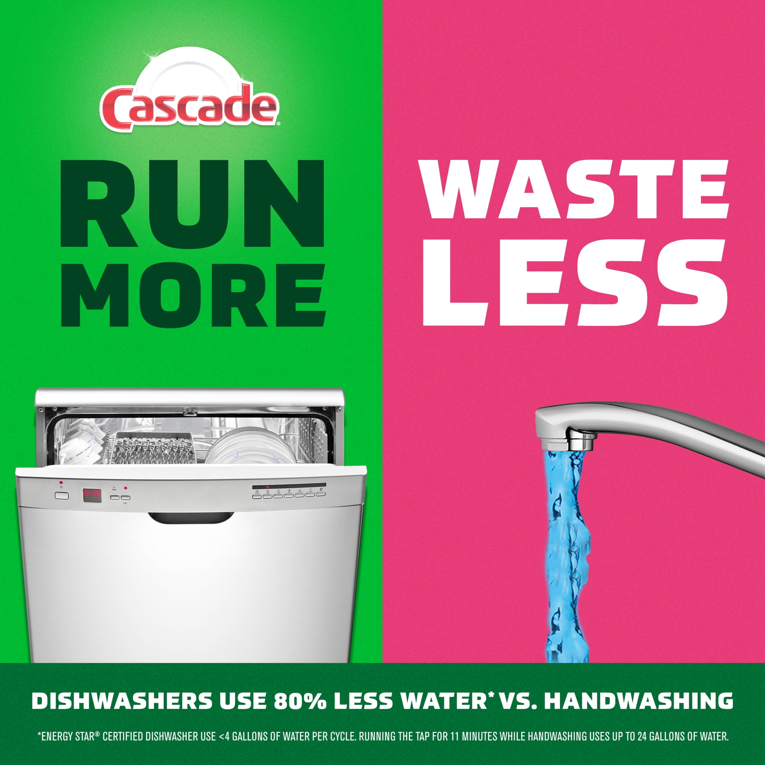 Cascade Total Clean ActionPacs dishwasher detergent is tougher than your toughest dried on messes. It’s formulated to power away greasy residue for sparkling dishes in one easy-to-use pod, with no residue left behind. These ActionPacs dishwasher pods combine the scrubbing power of Cascade and the grease-fighting power of Dawn to leave your dishes virtually spotless. They dissolve quickly in your dishwasher to unleash cleaning power early in the cycle and leave virtually no mess—only clean dishes and light fresh scent. Simply load your dishwasher, pop in a Total Clean ActionPac, and go! Cascade is the #1 Most Recommended* Brand in North America. (*More dishwasher brands in North America recommend Cascade vs. any other automatic dishwashing detergent brand, recommendations as part of co-marketing agreements). You can save 100 gallons of water per week by skipping the sink and using your dishwasher & Cascade ActionPacs every day (*Savings vs. washing dishes at a running sink for 10 minutes per day). That’s because Energy Star certified dishwashers use less than four gallons of water in each cycle, whereas a running sink can use four gallons of water every two minutes! Plus, your dishwasher doesn’t need to be full to save water—with as few as eight dishes you can save water vs. washing those dishes by hand at a running sink for two minutes. Try limited edition Wicked Emerald City scent!