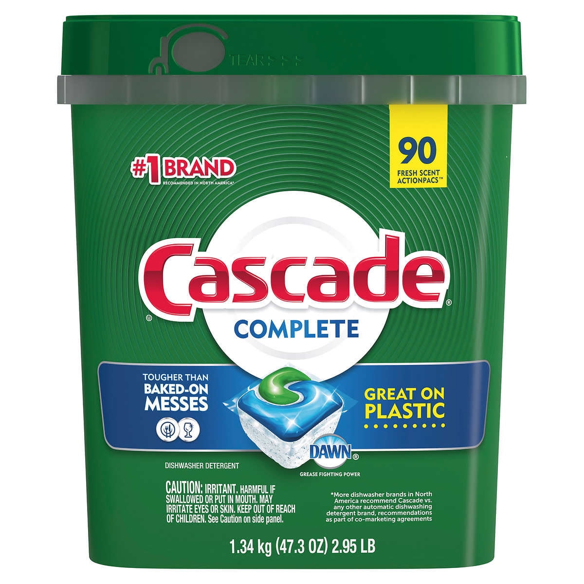 Cascade Complete ActionPacs dishwasher detergent powes away even 24-hour stuck-on messes for a complete clean. That’s because every ActionPac is formulated with the grease-fighting power of Dawn.