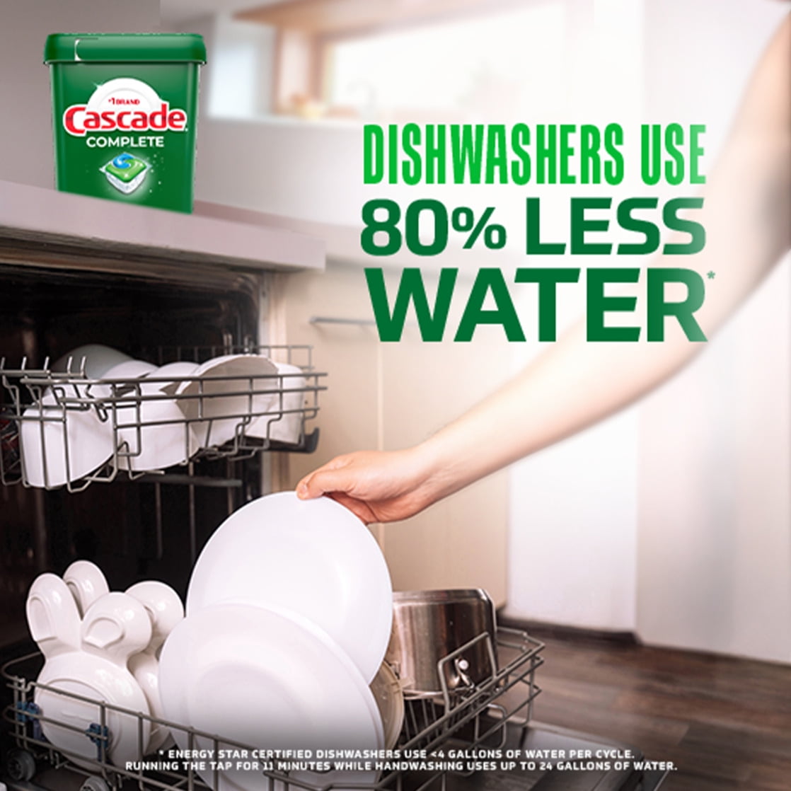 • Running the dishwasher daily saves water* Save up to 20 gallons of water per dishwasher load *ENERGY STAR certified dishwashers use 4 gallons per cycle. Running the tap for 11 minutes handwashing uses up to 24 gallons of water.