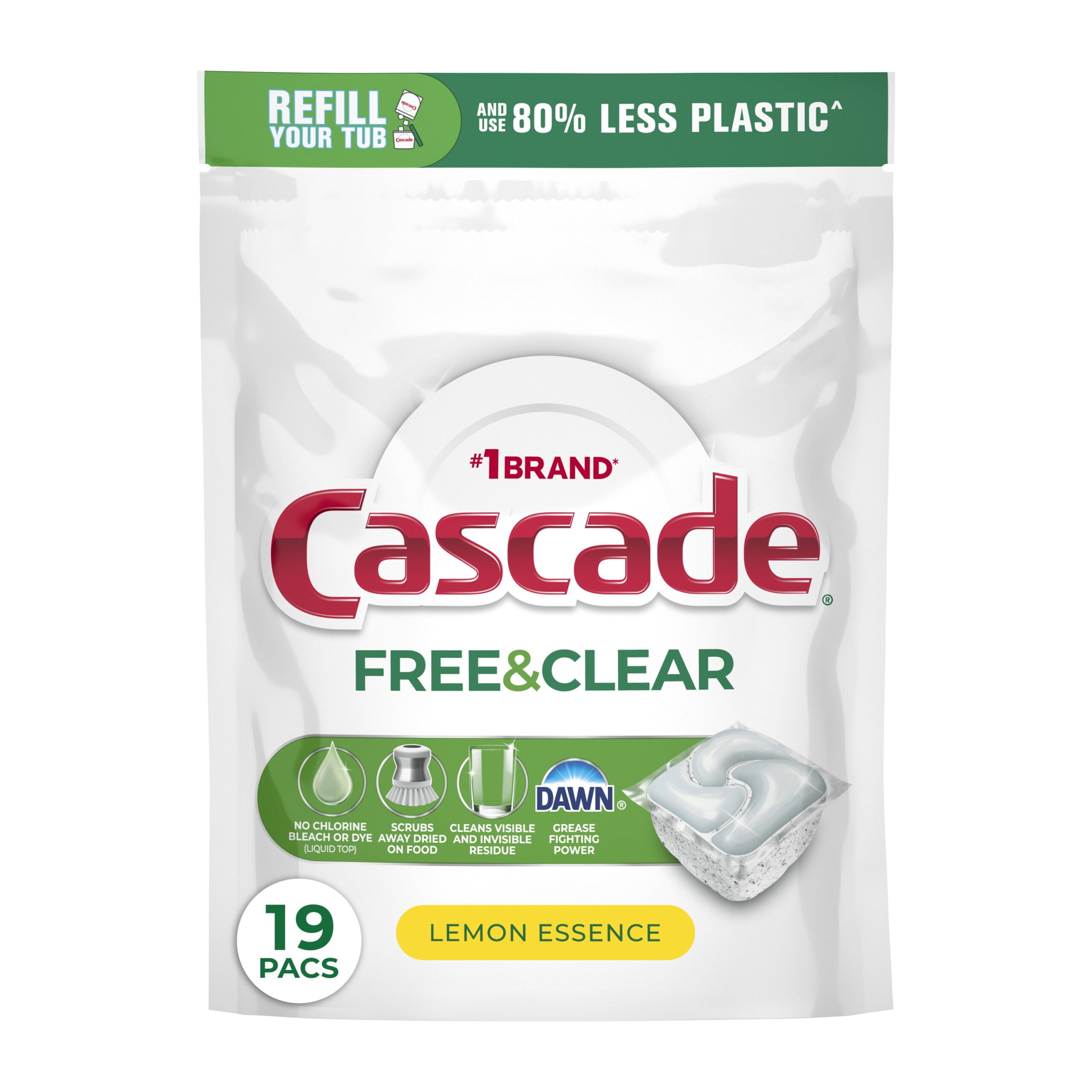 Cascade Free & Clear Dishwasher Pods, Dishwasher Detergent Packs, Detergent Tabs, Lemon, 19 Count