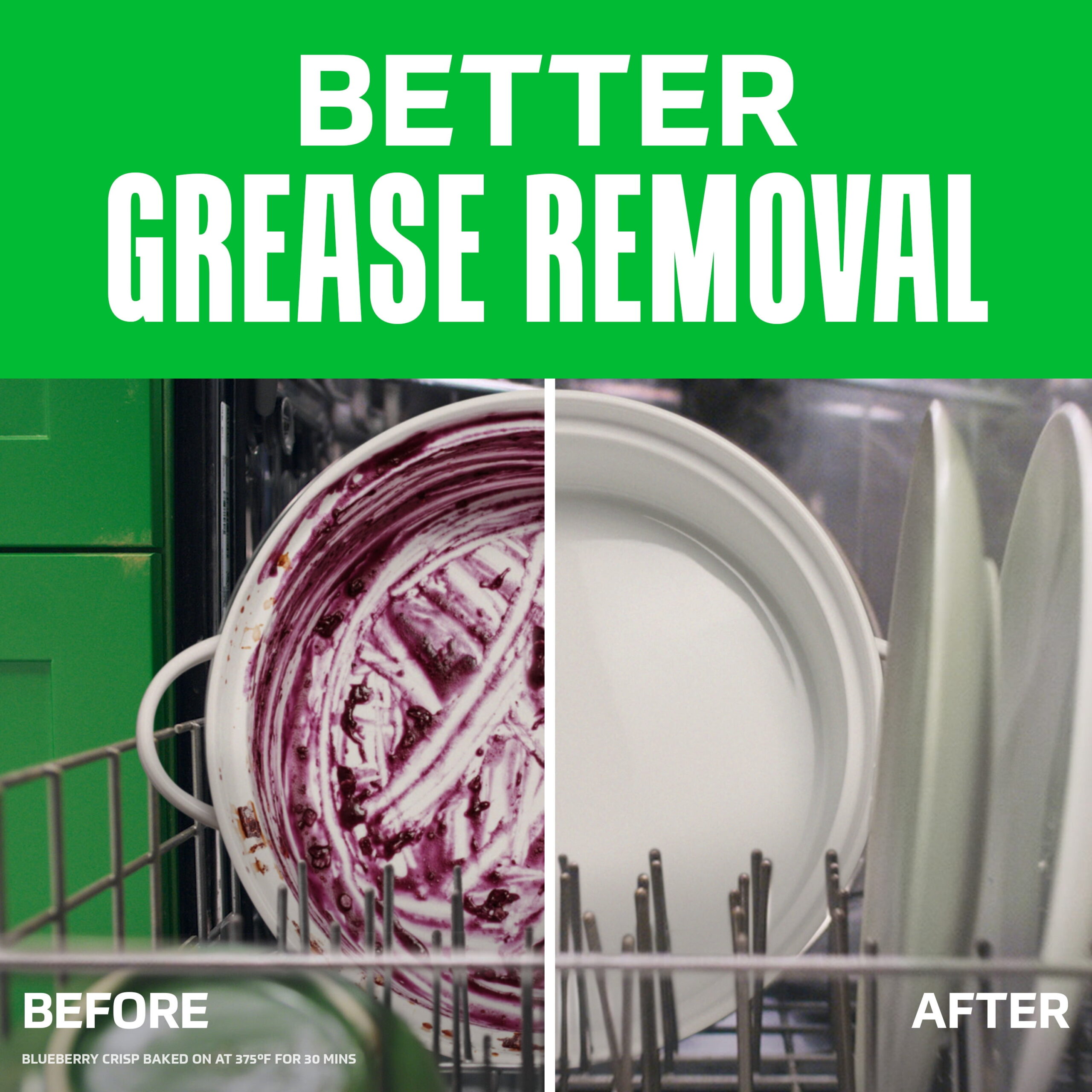- Powers away 24- hour stuck-on messes in just one wash, with no pre-wash needed.