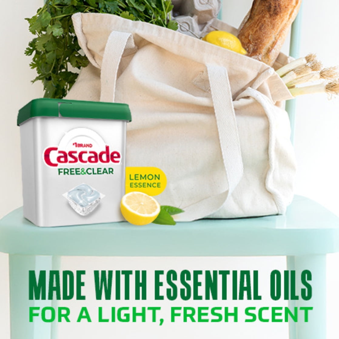 Cascade Free & Clear Dishwasher Pods, Dishwasher Detergent, Dish Detergent Soap, Lemon, 47 count