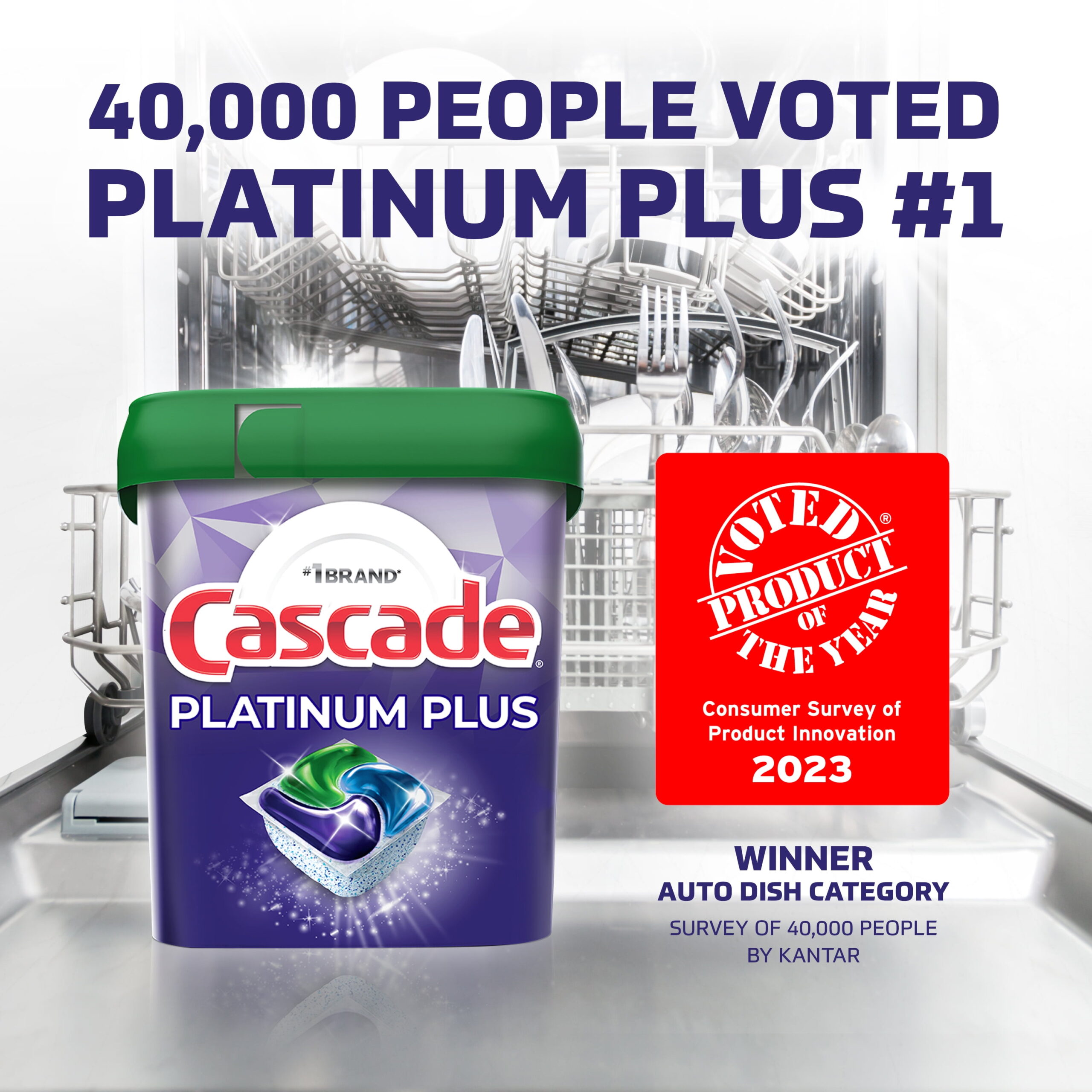 Get virtually spotfree sparkling clean dishes on even the toughest messes with Cascade Platinum Plus dishwashing tabs