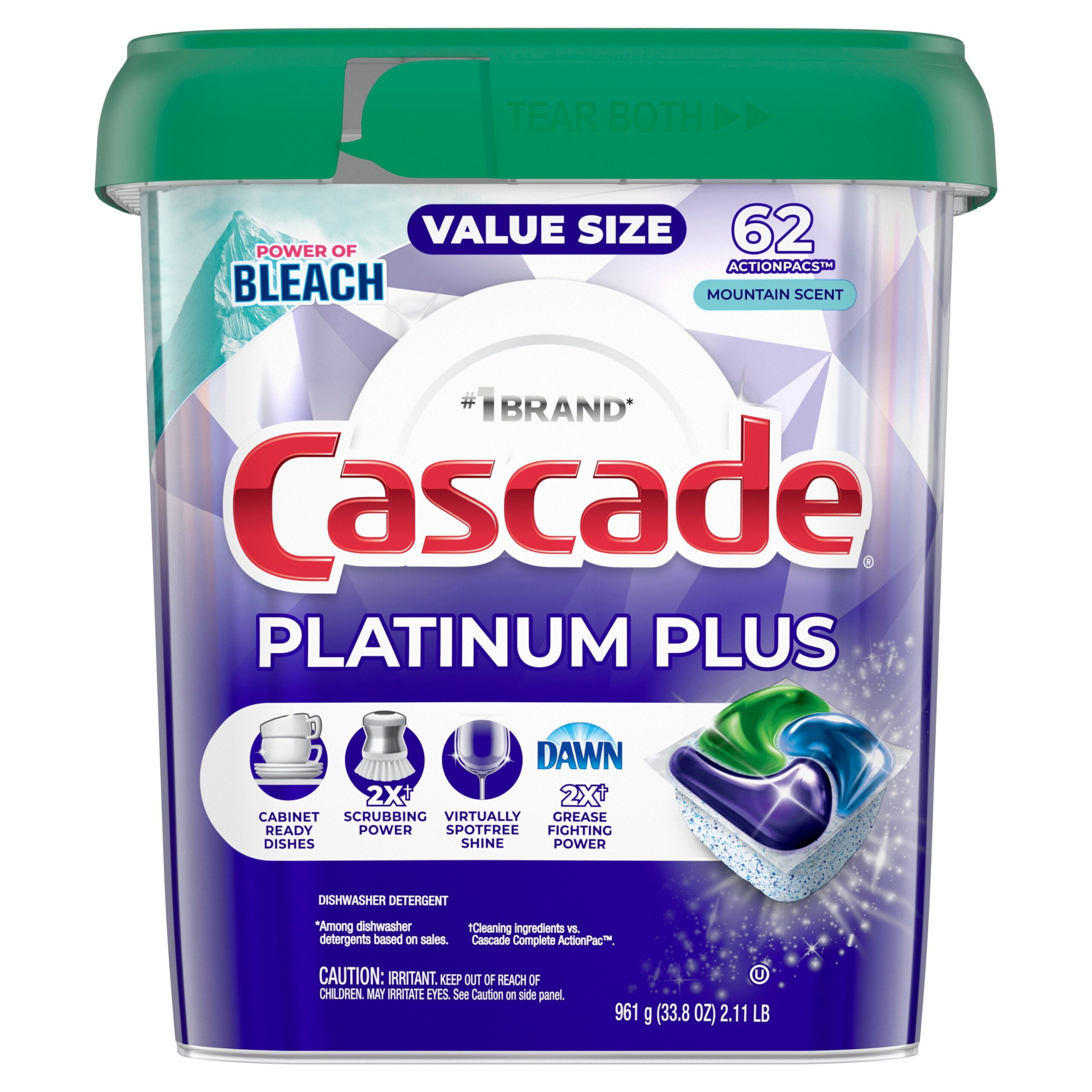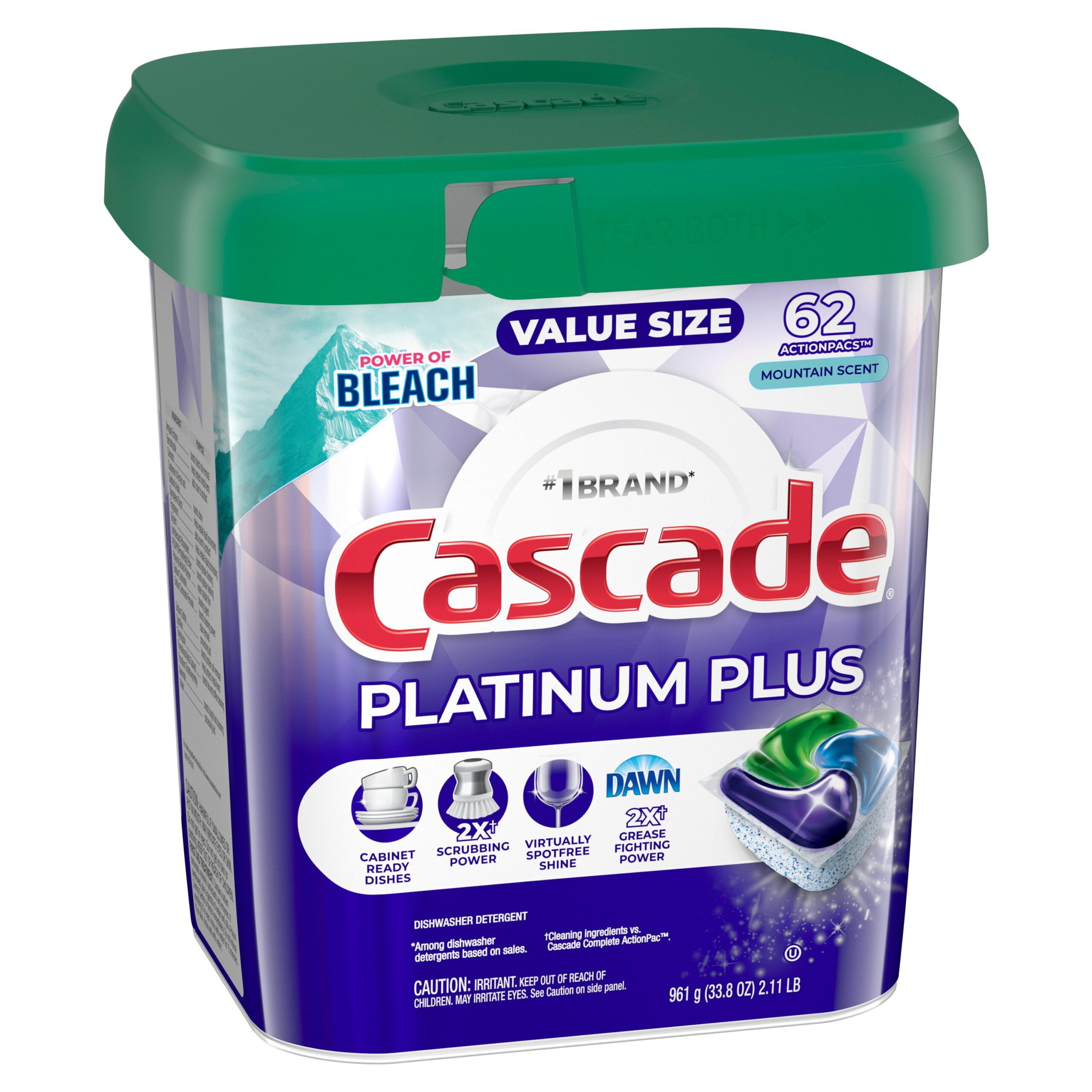Cascade Platinum Plus Dishwasher Detergent Pacs, Mountain, 62 Count
