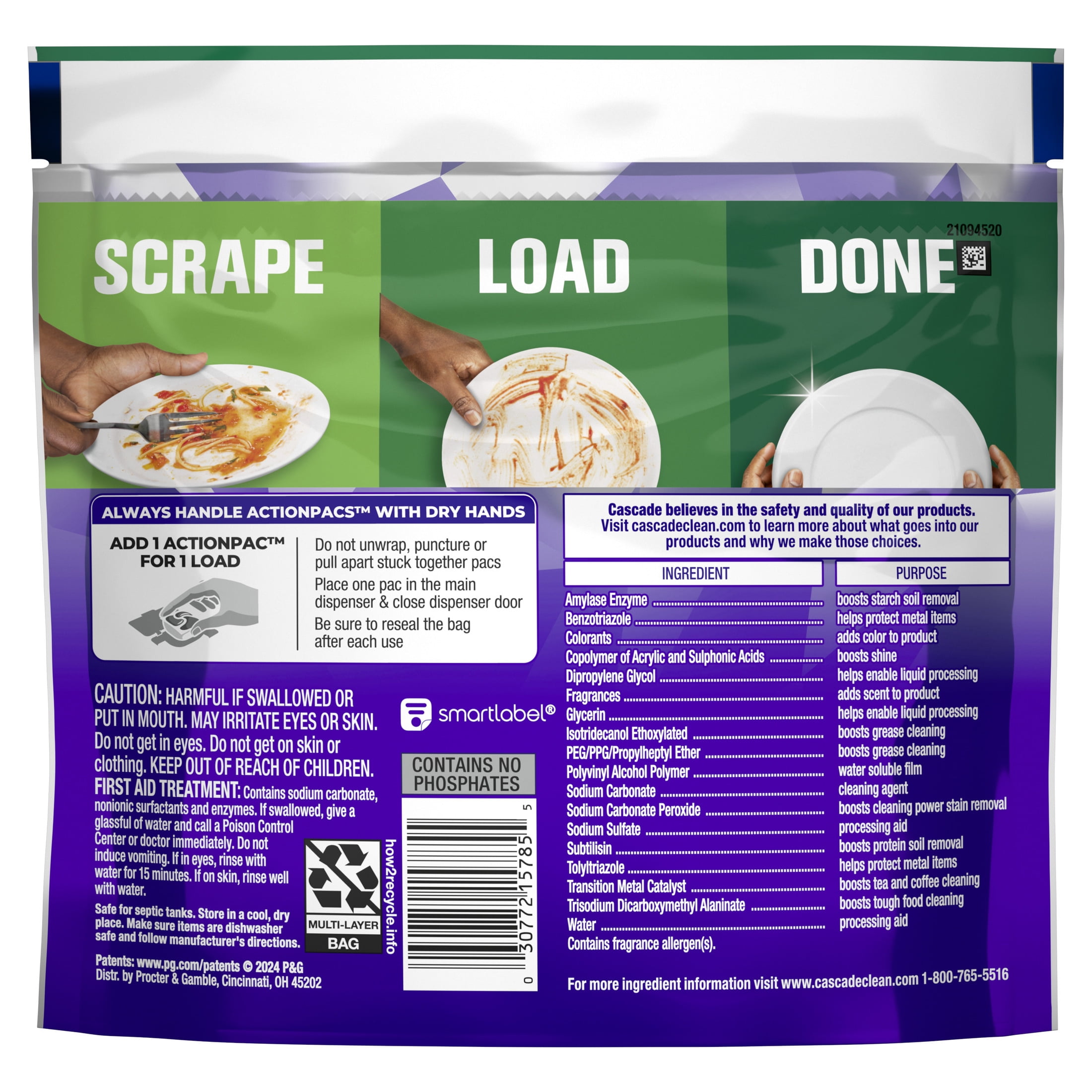 • Only Cascade Platinum Plus contains 2X* the Dawn grease fighting power and 2X* the scrubbing power to power through dried on food *Cleaning ingredients vs Cascade Complete ActionPacs