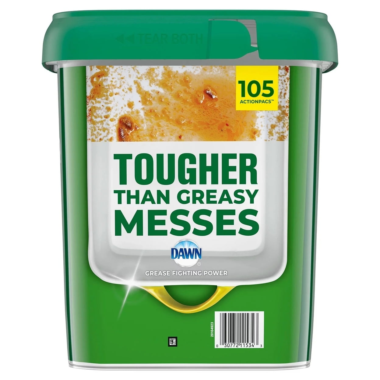 Cascade Total Clean ActionPac Dishwasher Detergent Pacs Lemon Scent (105 Count) Cascade Total Clean ActionPacs dishwasher detergent is tougher than your toughest dried-on messes. Its formulated to power away greasy residue for sparkling dishes in one easy-to-use pod with no residue left behind. These ActionPacs dishwasher pods combine the scrubbing power of Cascade and the grease-fighting power of Dawn to leave your dishes virtually spotless. They dissolve quickly in your dishwasher to unleash cleaning power early in the cycle and leave virtually no mess only clean dishes and a light fresh scent.