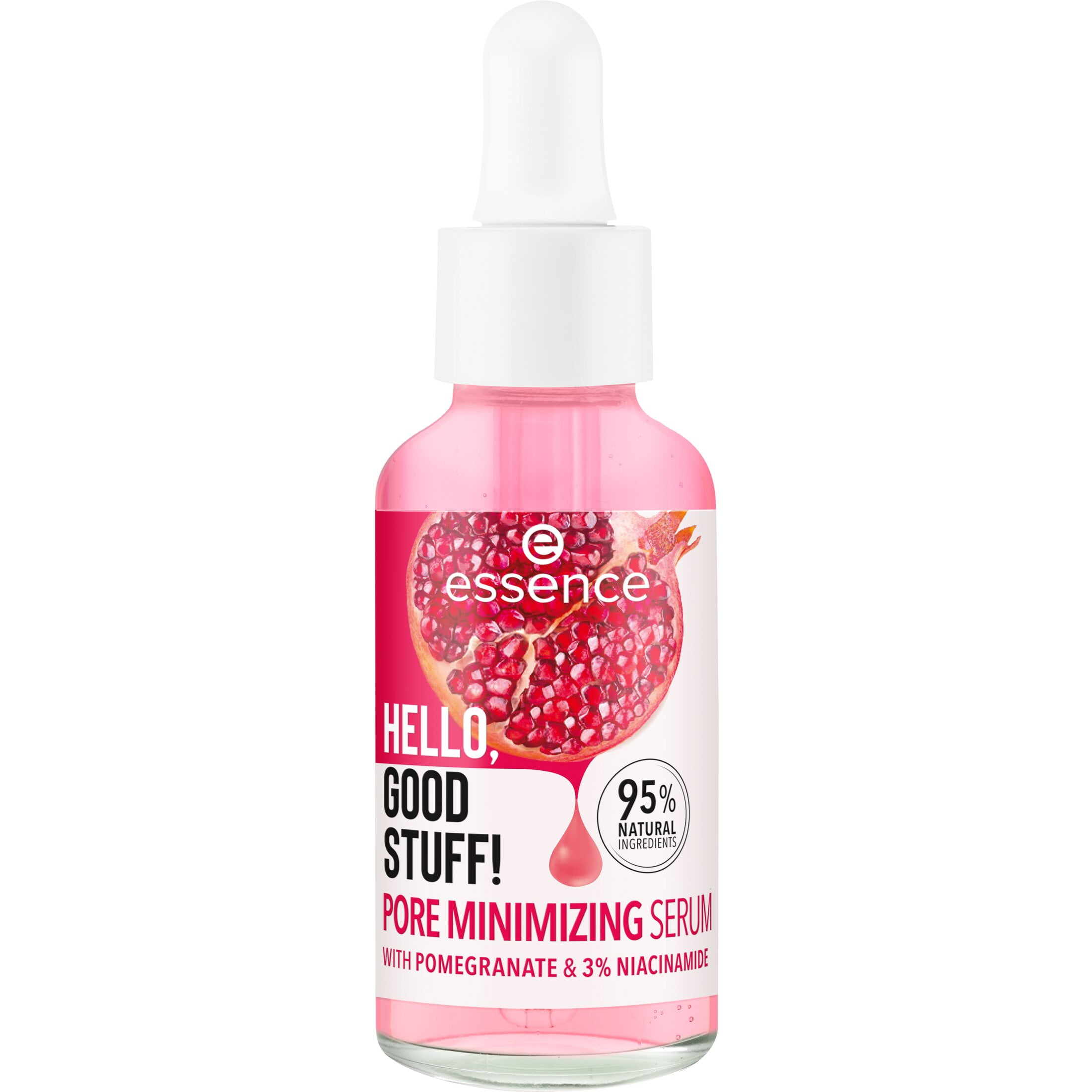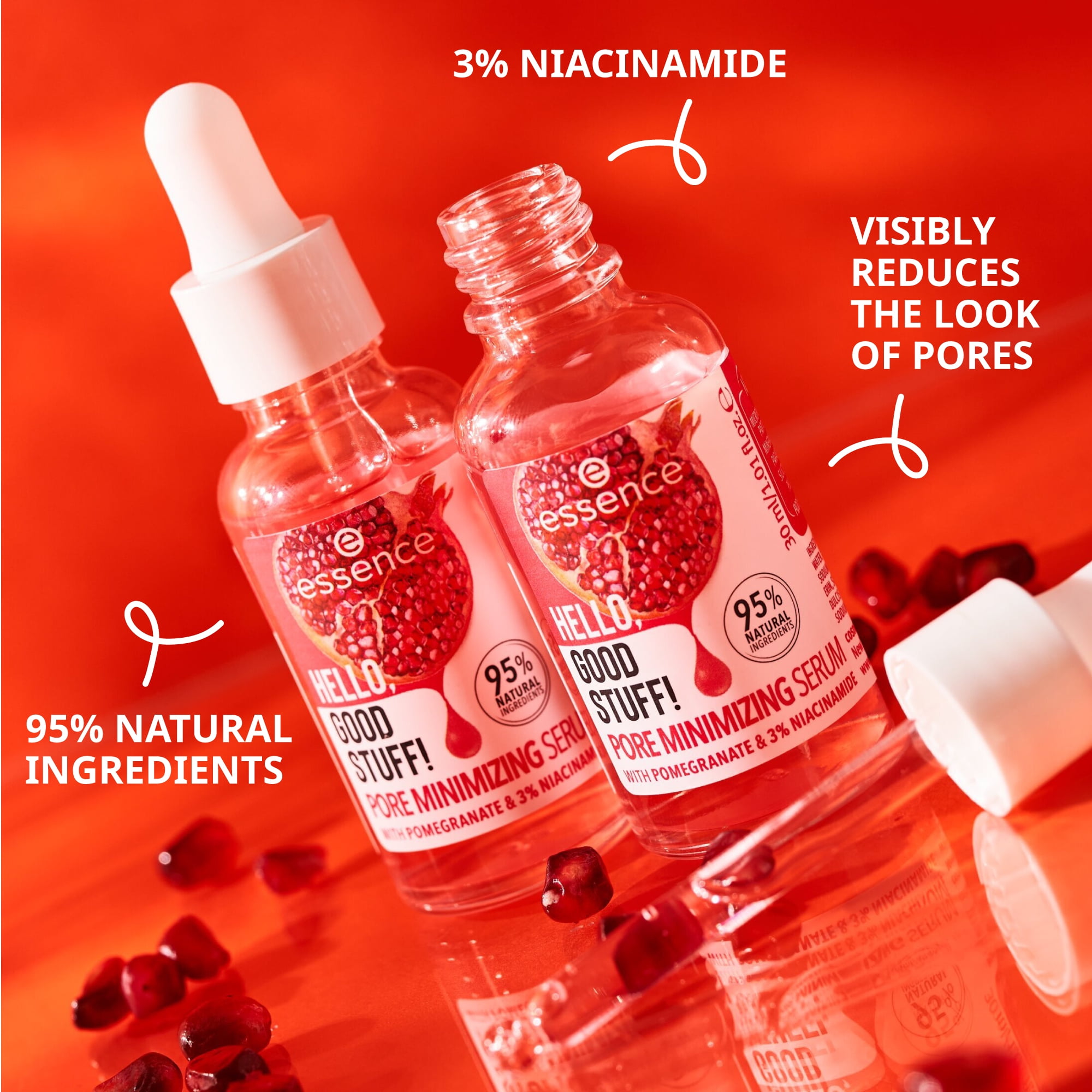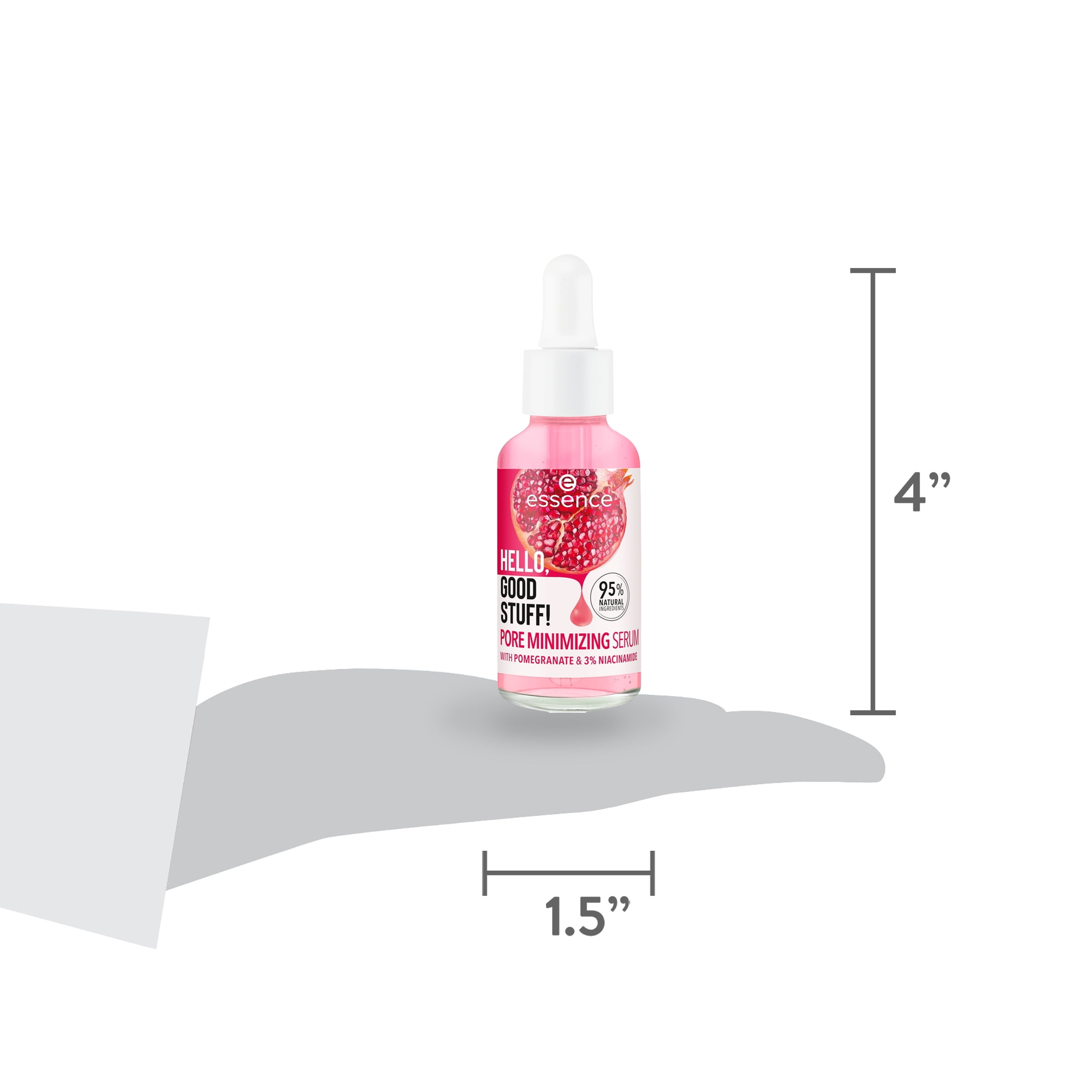 Achieve a visibly refined complexion with the essence Hello, Good Stuff! Pore Minimizing Serum. Formulated with 95% natural ingredients, including pomegranate fruit water and 3% Niacinamide, this serum leaves your skin soft and supple while visibly reducing the look of pores!