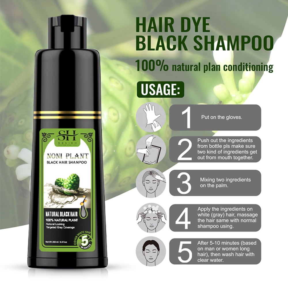 - EASY TO USE: All you have to do is wear the gloves we have thoughtfully included, apply the instant hair dye on your wet hair, massage for 5′- 10’so that the shampoo covers your whole hair and scalp, and rinse well. That’s it – you now have rich, shiny black hair.