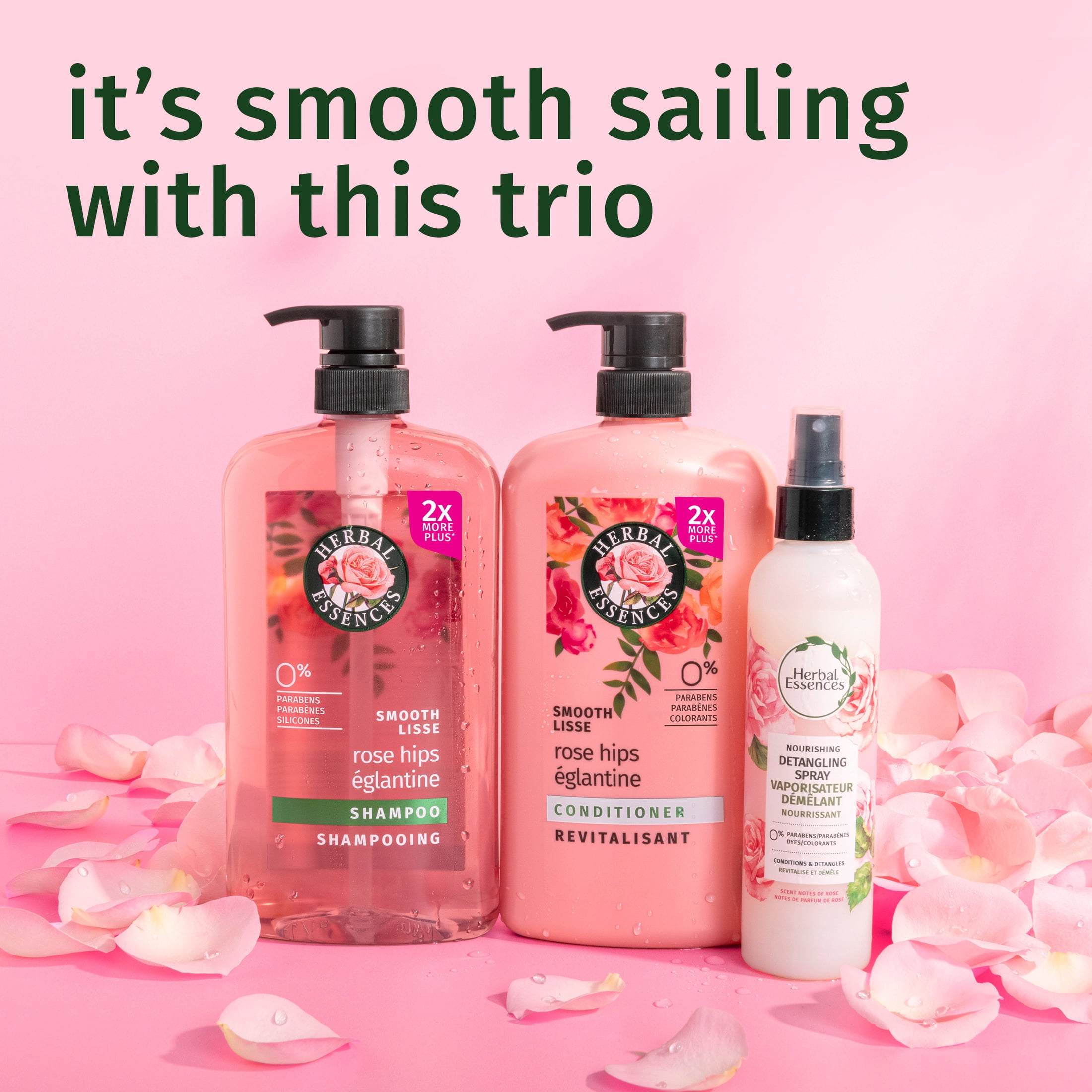 Herbal Essences is here to help you smooth things out. Our Smooth Collection Conditioner is a conditioner formulated with soothing Vitamin E, Rose Hips and Jojoba Extracts to deeply condition and de-frizz hair for a soft, sleek end-look. This Rose Hips conditioner also helps restore hair’s natural shine. Plus, this conditioner is free of silicones and mineral oil, making it a great daily conditioner. This is an effective conditioner. Now those are some smooth moves from this Rose Hips conditioner!