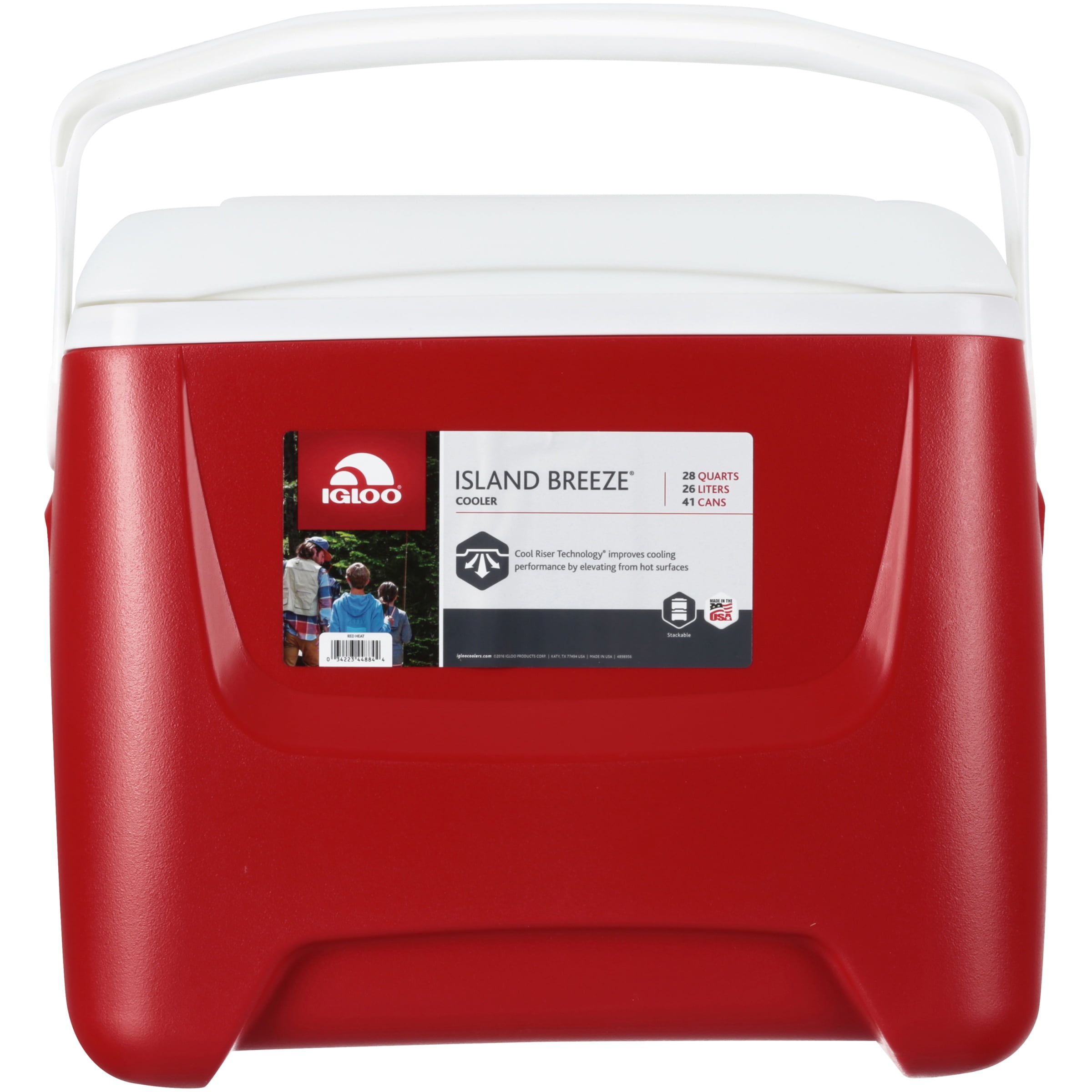 Keep your favorite drinks and snacks cold and ready inside the Igloo 28-Quart Island Breeze Cooler. Lightweight and portable with an easy grip handle, take the Igloo Cooler with you on your next camping trip, outdoor expedition or just for a trip to the park. The durable, hard plastic exterior will keep its shape over time in order to keep up with your busy life. The large size can comfortably hold up to 41 cans, so you will be ready for a full day’s adventure with friends! It features three grab/carry points and a curved back that contours to your body for comfort while carrying. This stackable Igloo Island Breeze Cooler is suitable for camping, game day or for use when boating or picnicking.