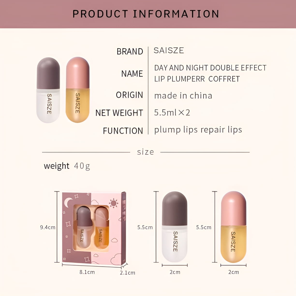 - 【Multi-Functional Makeup Assistant】You can use the day-time lip enhancer as a lip gloss or primer, then add your favorite lip colors to make your lips pop! During relaxing time, use the night-time lip care to keep your lips well-nourished around the clock!