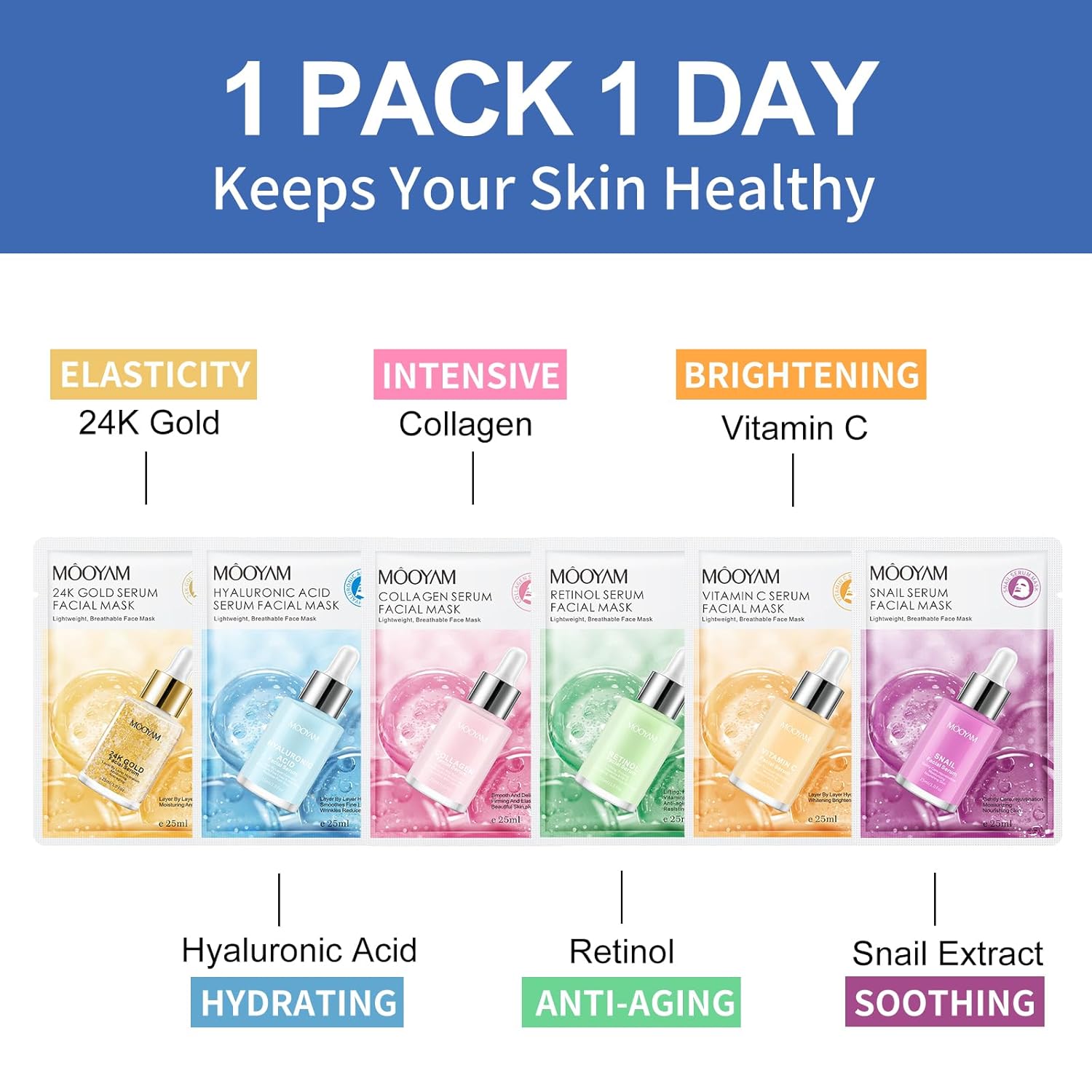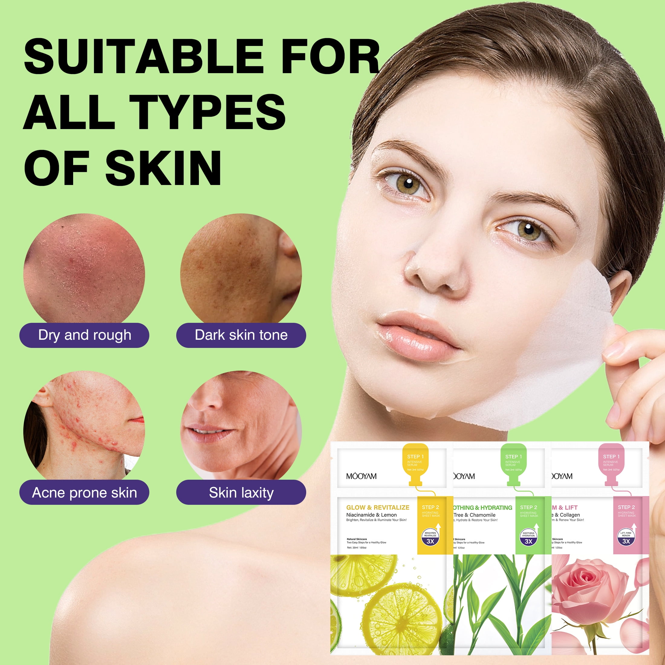 Easy to Use: Each sheet mask is individually packaged for on-the-go convenience, making it simple to use anytime, anywhere. Suitable for all skin types.