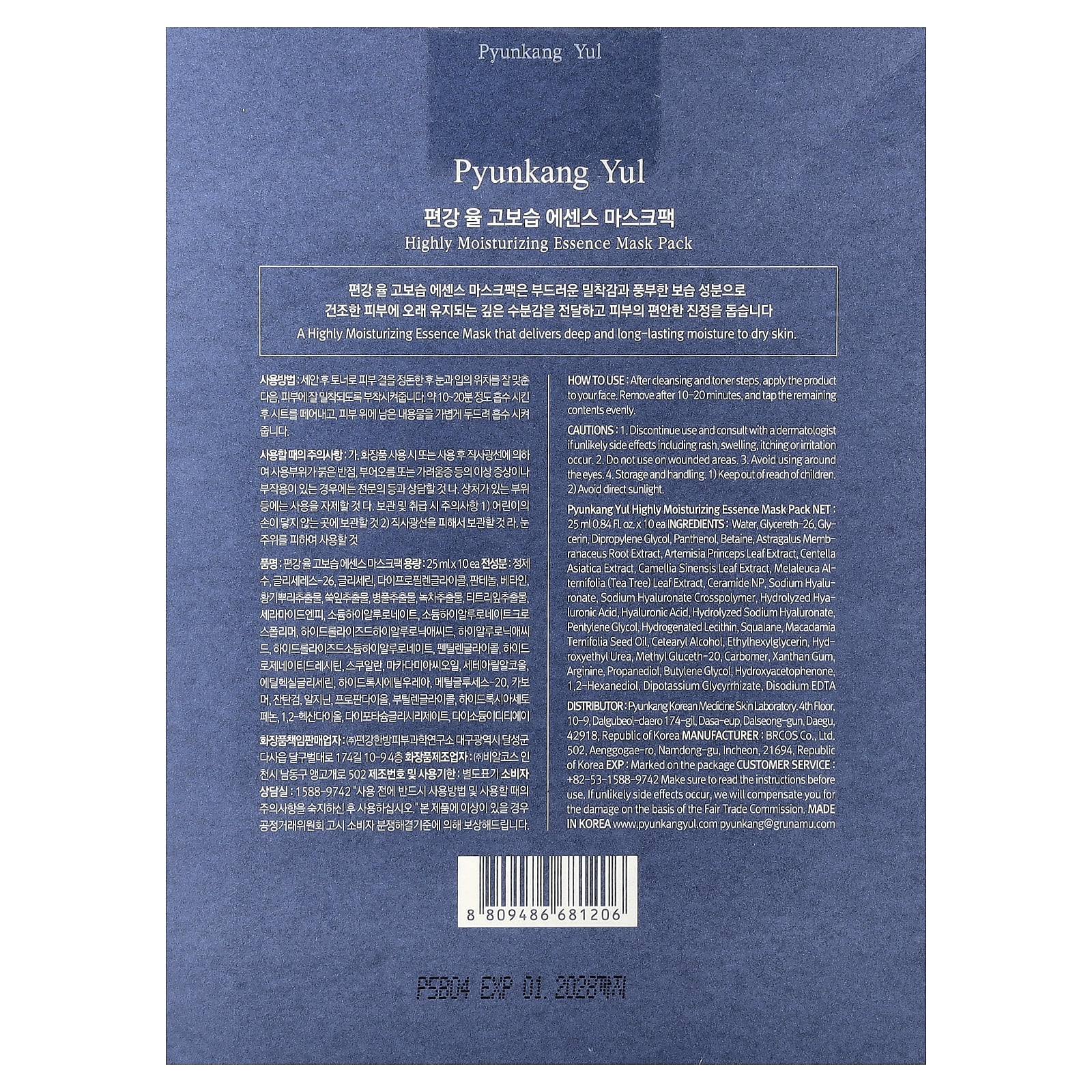 Pyunkang Yul Highly Moisturizing Essence Beauty Mask Pack, 10 Sheets, 0.84 fl oz (25 ml) Each