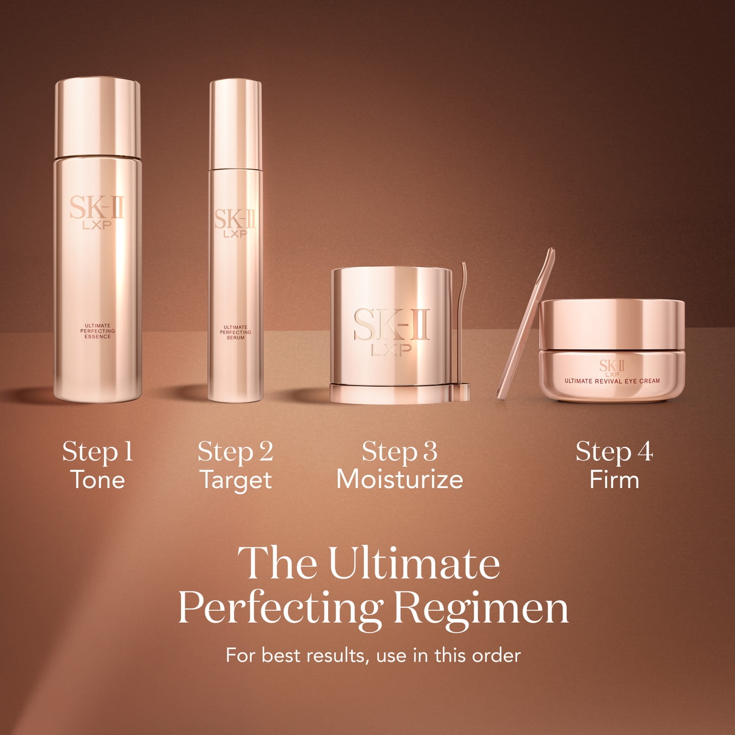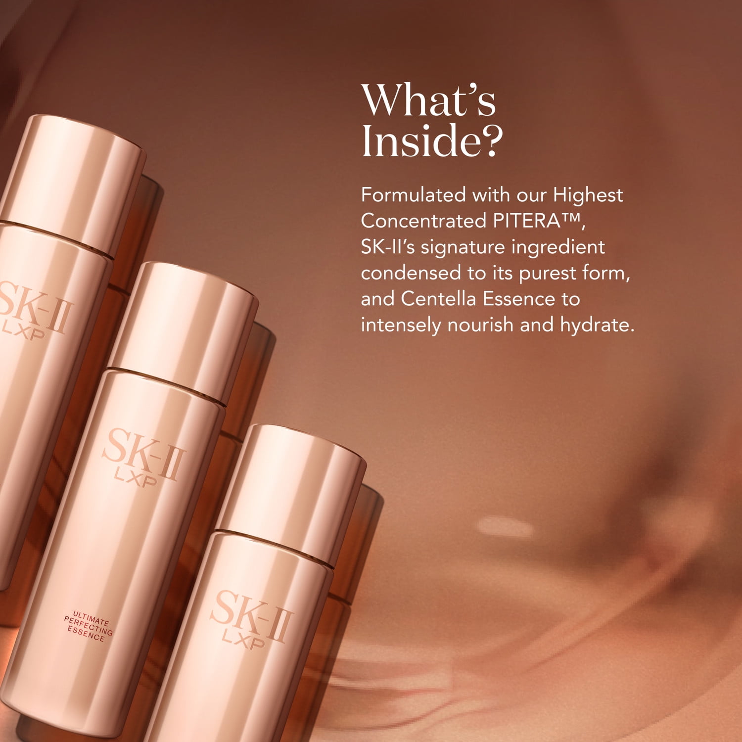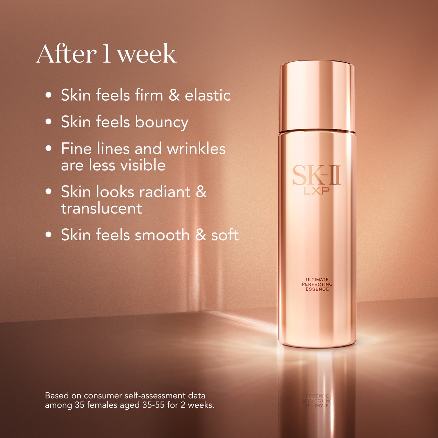 Experience the first step to the ultimate skin transformation in as few as three days with this exquisite facial treatment essence. LXP Ultimate Revival Essence harnesses the power of SK-II’s most concentrated Pitera, as well as centella essence, to deliver velvety smooth skin, taut firmness, radiant luminosity, exceptionally even skin tone, and maximum wrinkle resilience. These ingredients work in synergy with the essence’s Golden Regenerating Complex, a trio of moisturizers that help to unlock the skin’s energy and deliver intense hydration.